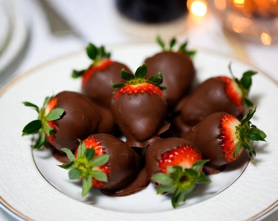 Refresca tu cuerpo con este postre con de 180g, con 140 g de fresas naturales congeladas y 40 g de chocolate amargo sin azucar.